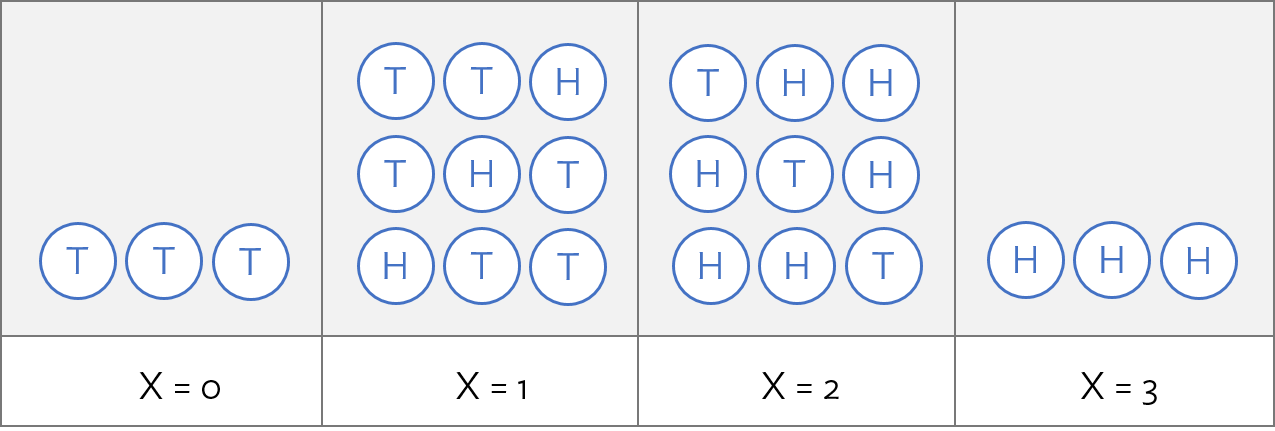 \(X = {}\) the number of heads when flipping 3 coins: