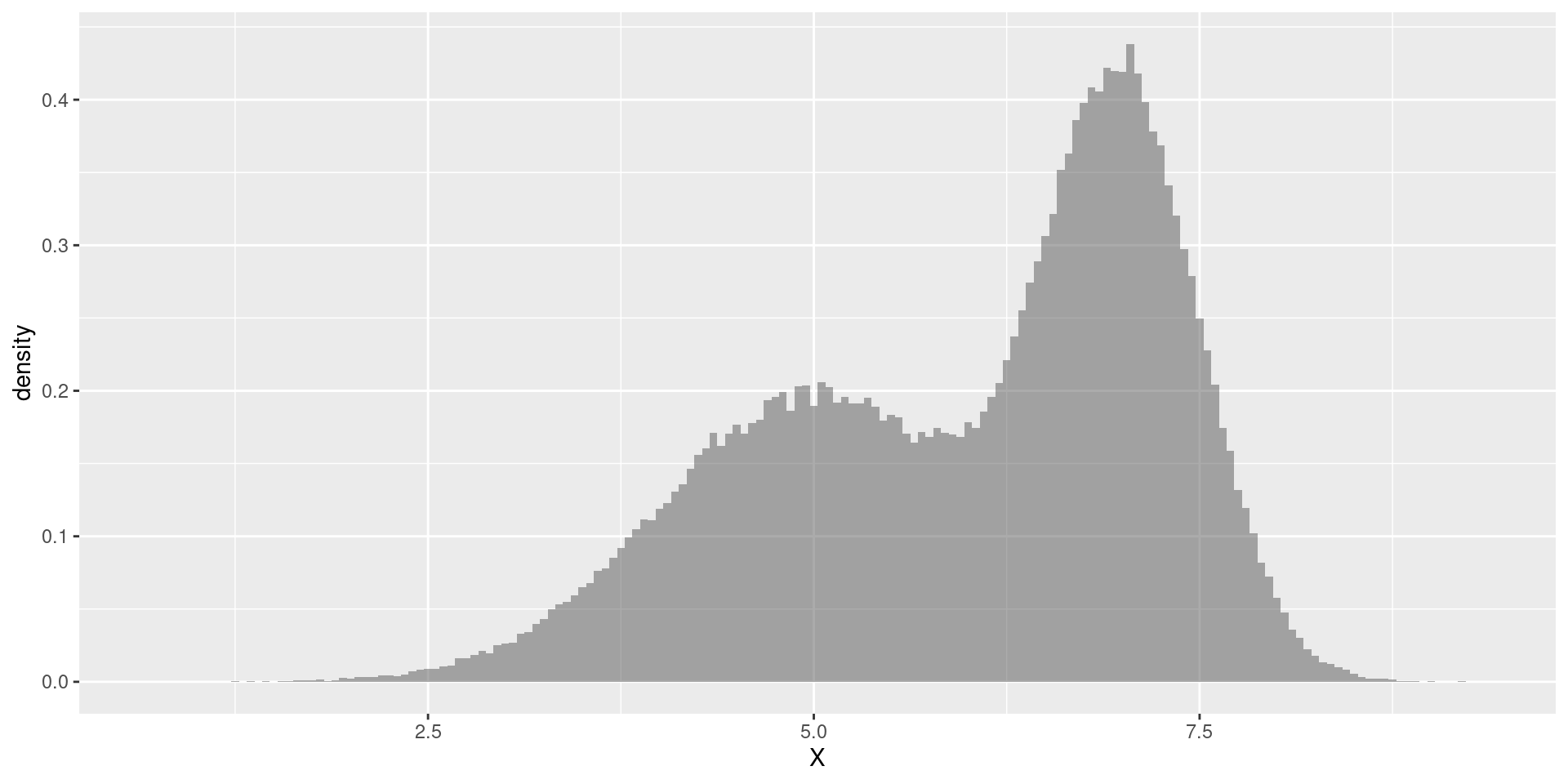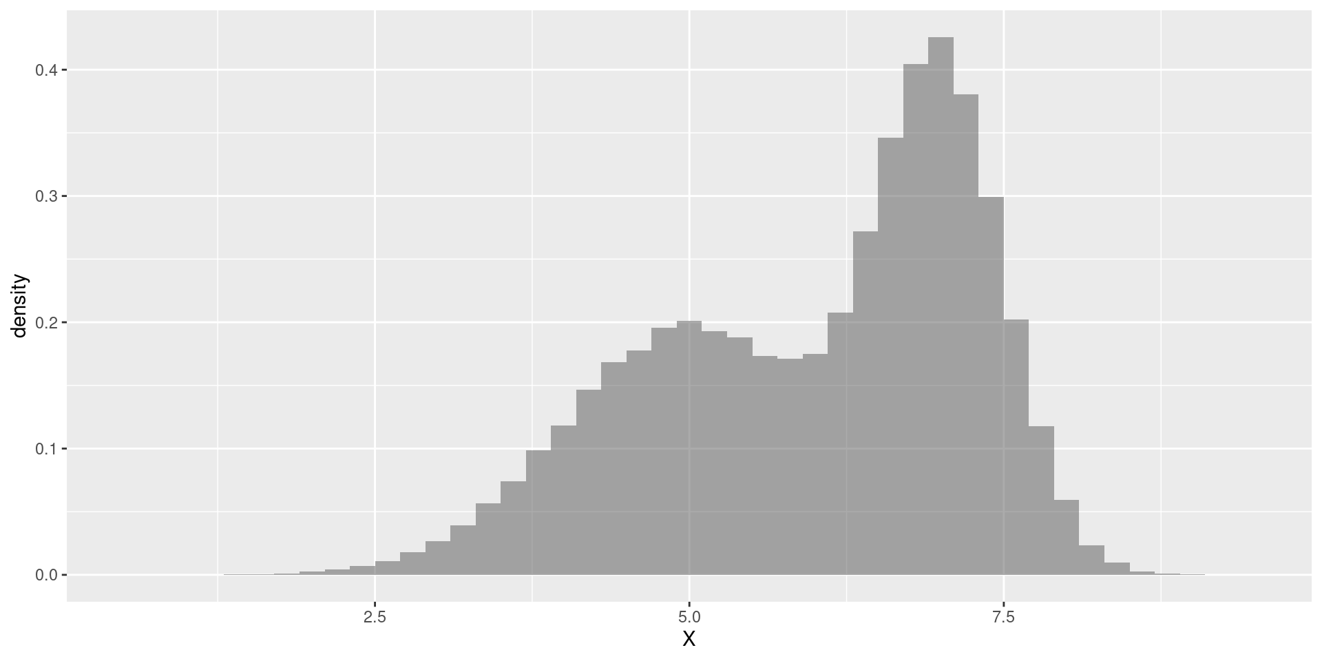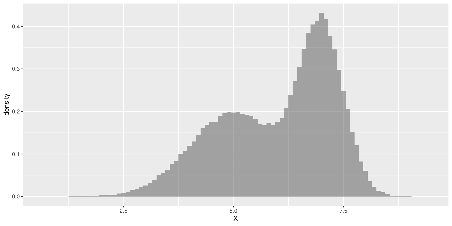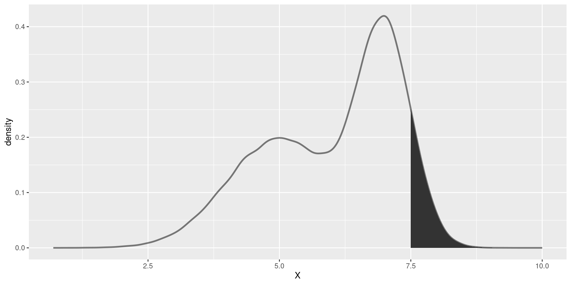 \(\operatorname{P}(X \ge a) = {}\) the area under the density curve, to the right of \(a\).