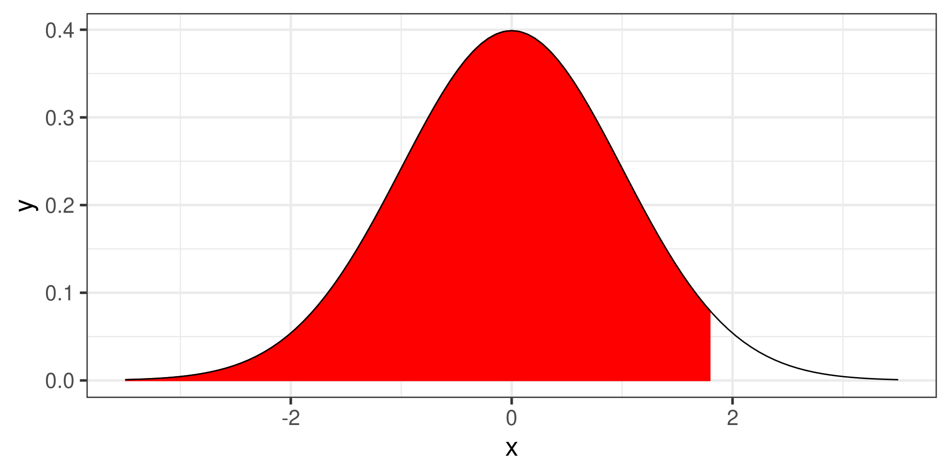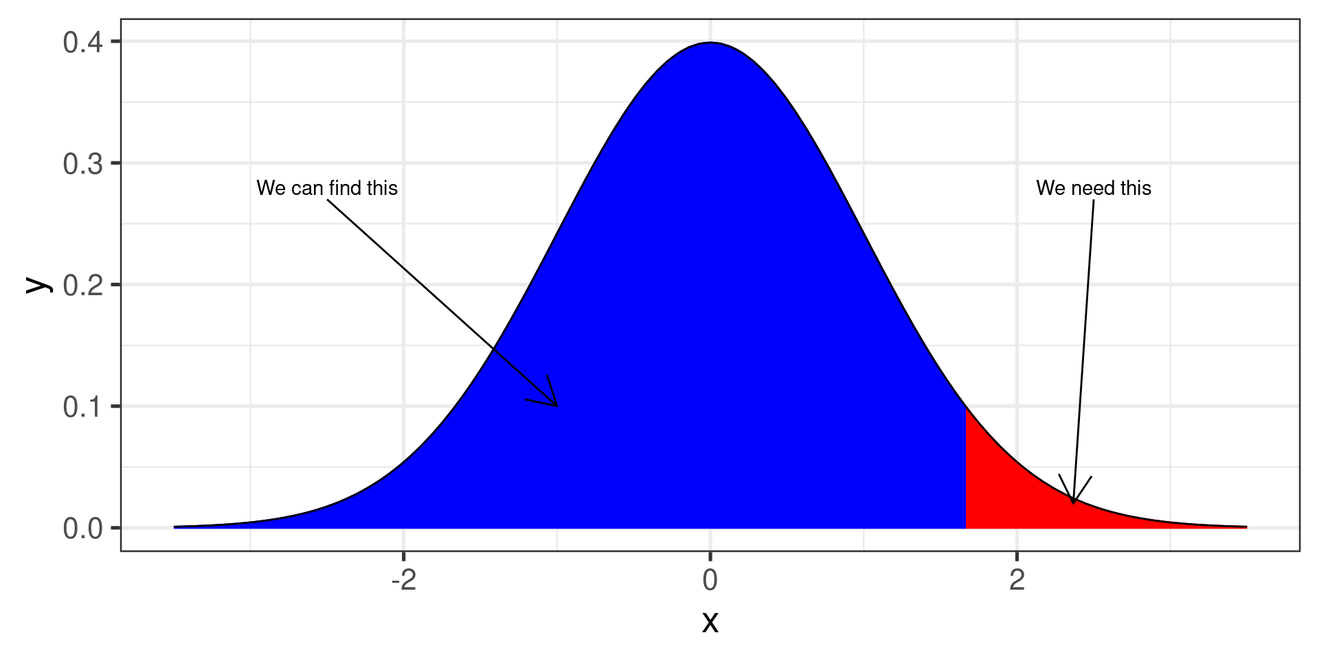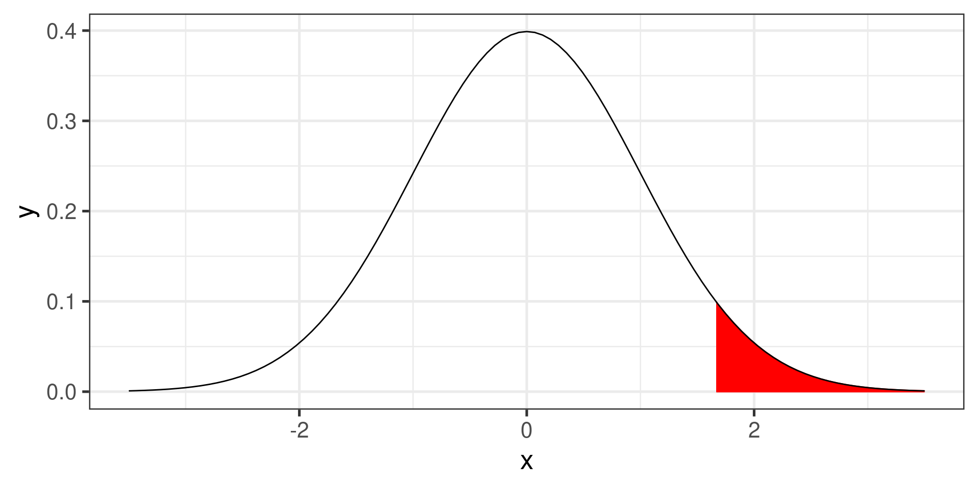 Now we need to find the area to the right of 1.6666667 under the standard normal curve.