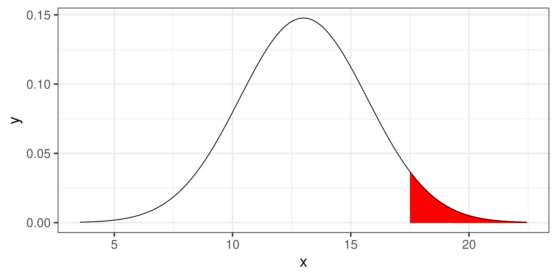 Find the probability that \(X {\color{red}\ge} 17.5\) if \(X \sim N(13, 2.7)\)
