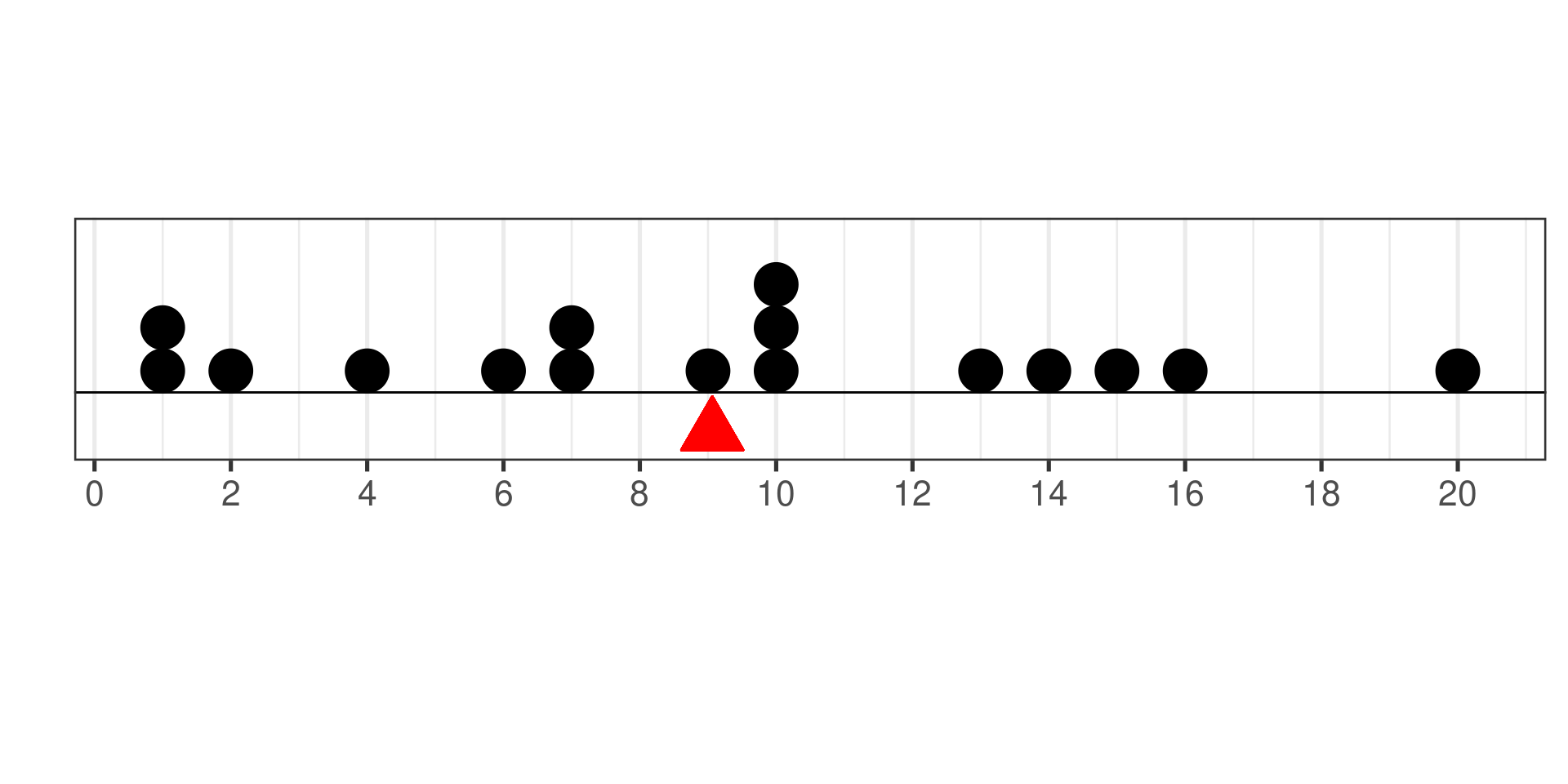 \(\displaystyle\overline{x} = \frac{145}{16} = 9.0625\)